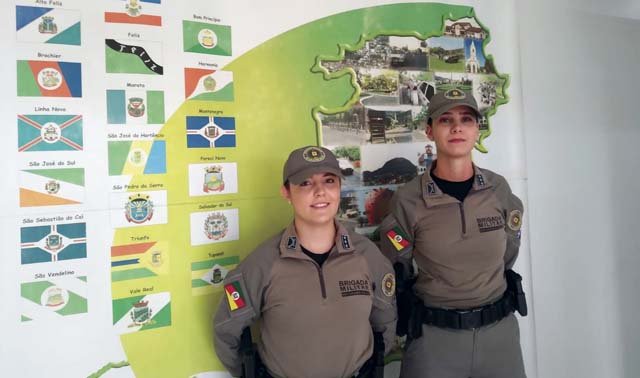 As duas capitãs se apresentaram na última semana no 5º BPM de Montenegro, onde vão passar a atuar. Elas fizeram concurso da Brigada Militar em 2018 e participaram de curso por dois anos em Porto Alegre.