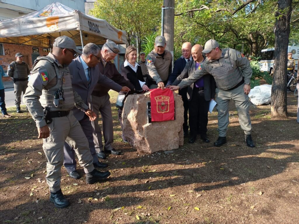 12 de agosto de 1955. Criação da unidade. Surge como “la cia de policiamento” recebendo o nome de “Batalhão Pedro e Paulo” em homenagem ao padroeiro do Rio Grande do Sul, São Pedro e também a São Paulo.