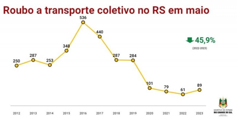 Desde 2010, o Rio Grande do Sul não fechava um mês com saldo de homicídios tão baixo. Em maio deste ano, foram 106 vítimas, queda de 20% em relação a maio de 2022. Segundo dados da SSP em setembro de 2020 o estado registrou 112 homicídios. Já em Porto Alegre, a tendência de queda também foi observada, com 12 casos, totalizando uma redução de 8% em relação a maio de 2022.