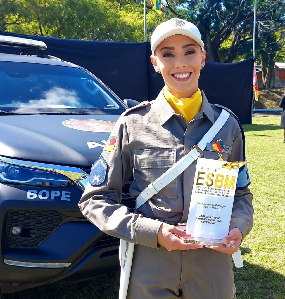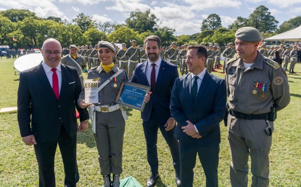 No decorrer da formatura de 676 novos soldados da Brigada Militar, a ESBM seguindo sua tradição institucional concedeu uma bolsa de estudos em Direito para a primeira colocada do Curso Básico de Formação Policial Militar @gabrielageske. A honraria foi entregue no decorrer da cerimônia pelo Diretor de Marketing da ESBM Tenente-coronel Alvorcem, juntamente com o Governador Eduardo Leite, o Secretário de Segurança Pública Delegado Sandro Caron e o Comandante-Geral da Brigada Militar Coronel Feoli.