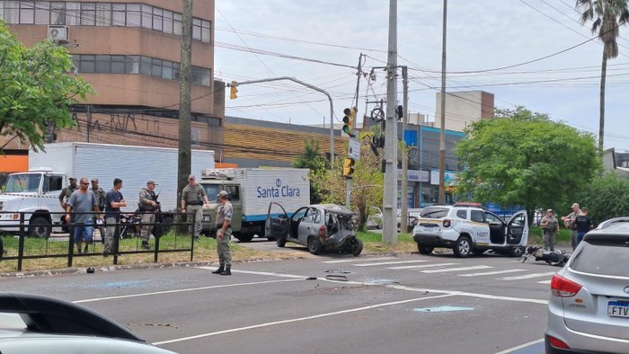 O passageiro de um dos carros, um Corsa, que ficou prensado em um poste de semáforo, não resistiu aos ferimentos e morreu no local. A Avenida Assis Brasil está totalmente bloqueada no sentido Centro-bairro, com a área isolada para perícia.