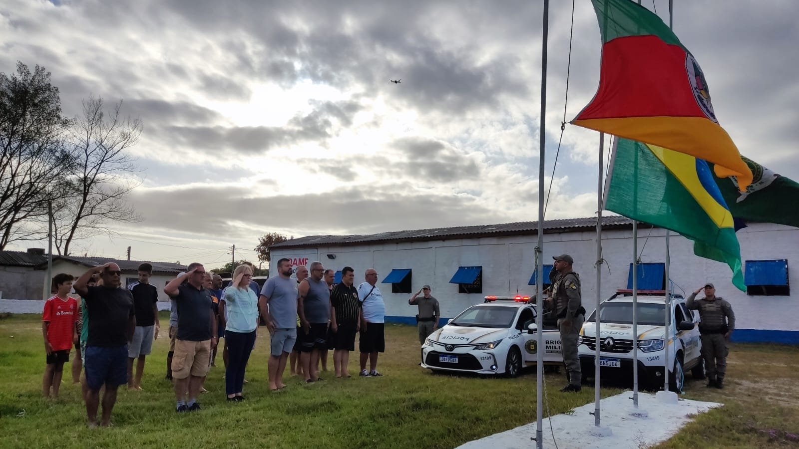 Associados veranistas da Colônia de Férias Farroupilha da ABAMF em Cidreira prestaram homenagem ao grande líder da associação, Soldado Potiguar Galvan falecido tragicamente neste sábado, 30/12/23. O momento foi de muita consternação, lamentações pela perda mas também de referências elogiosas ao jovem policial que em pouco tempo a frente da ABAMF, conseguiu agregar apoios e dar início a uma gestão austera que se apresenta unida em busca do bem coletivo de seus associados. O ato de reverência foi dirigido pelo Diretor- Secretário da ABAMF estadual e administrador da Colônia de férias Dionatas de Souza e contou com a presença de representação de guarnição de serviço que ao toque de sirenes fizeram um minuto de silêncio ao presidente que deixou enlutado, familiares, colegas e sociedade que perdeu um defensor dos brigadianos.