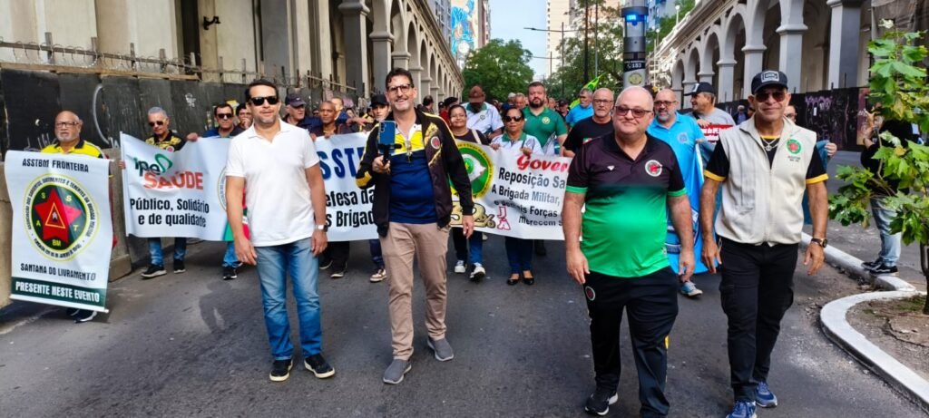 “- Chamamos a representação dos servidores da Brigada Militar … e que bom que desta vêz vocês estão do lado de Cá”