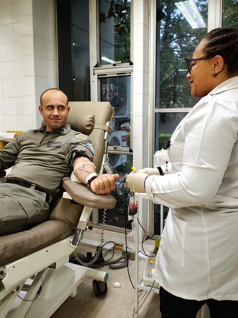 Durante a manhã, 30 alunos-soldados da Escola de Formação de Soldados (Esfas) de Porto Alegre realizaram doações no Hemorgs. A atividade compõe a componente da formação cidadã dos futuros policiais militares. Já durante a tarde, mais cinco policiais do efetivo do Comando Rodoviário da Brigada Militar (CRBM) doaram no Hospital de Clínicas.