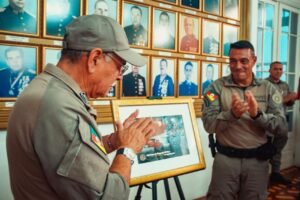 Em reconhecimento aos excelentes serviços prestados, o Comando da BM promoveu uma homenagem para marcar o último dia do “veterano” na Corporação. O subcomandante-geral e o Ajudante-geral da BM estiveram presentes no ato.