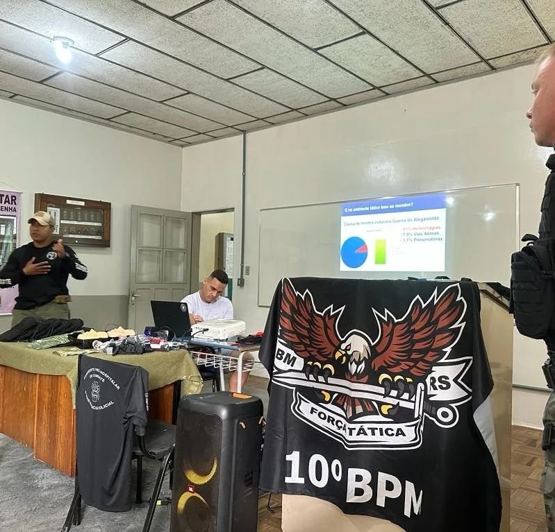 A Brigada Militar realizou na manhã desta quarta-feira (15), uma instrução de atendimento pré-hospitalar policial, em Vacaria. A capacitação foi ministrada pelo Soldado Reis do Corpo de Bombeiros de Vacaria e pelos integrantes da equipe de Força Tática do 10° Batalhão de Polícia Militar.