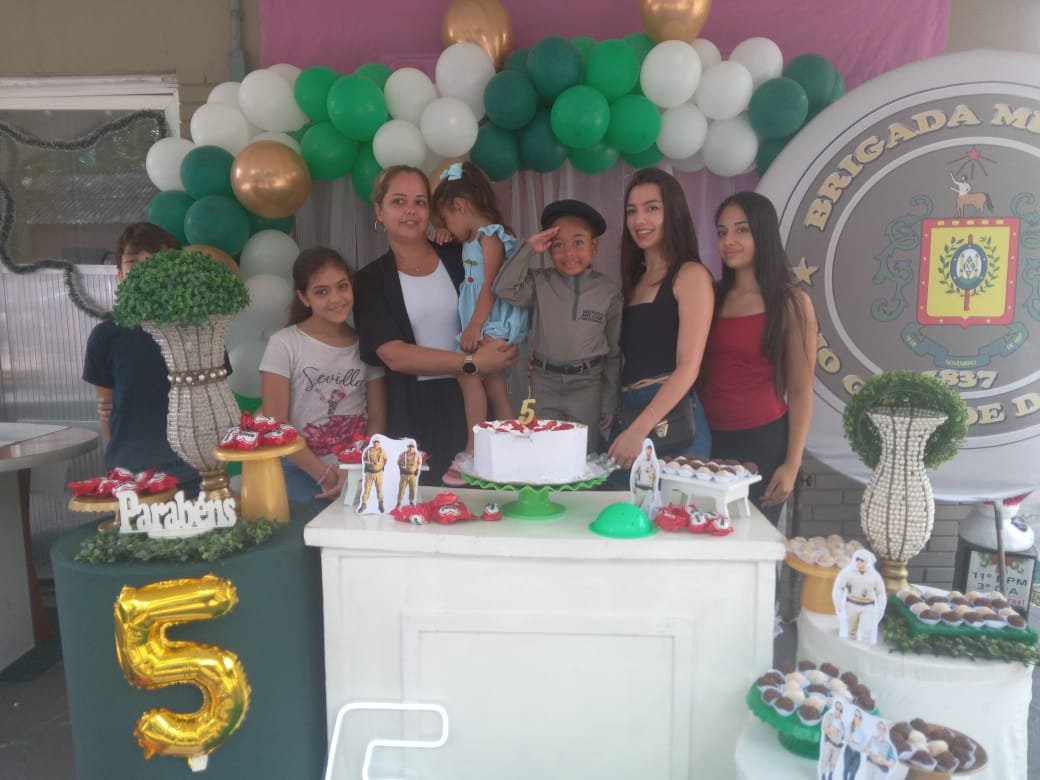 Após todas essas surpresas, familiares e amigos se deliciaram com doces e salgados oferecidos pela equipe do 11º BPM.