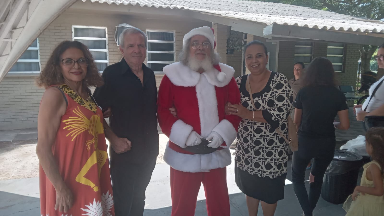 Dominique Castro do DA, que gentilmente confecionou o fardamento e do conhecido Papai Noel Servidor Civil aposentado da Brigada Militar Darci Juarez de Campos Homem