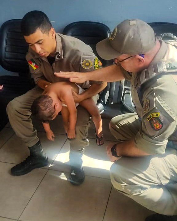 Prontamente o Sd Alves iniciou a Manobra de Heimlich, a qual foi também realizada pelo 2° Sgt Stangherlin, até o pequeno retomar os sinais vitais e começar a chorar.