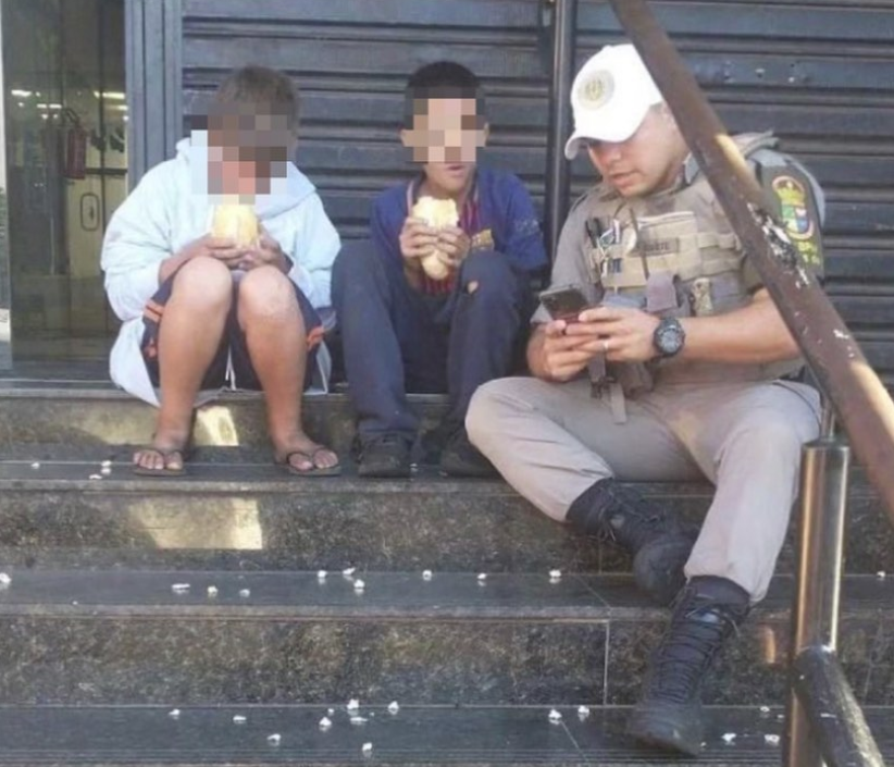 Rapidamente os PMs providenciaram um lanche para a dupla, que aparentava estar com fome. Após foram levados ao Batalhão para realizarem uma refeição completa.