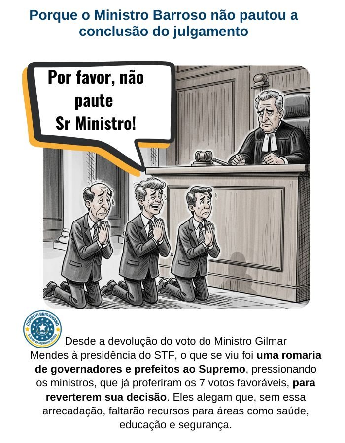 Hoje, o julgamento da ADI 6254, que trata deste tributo / confisco está parado no STF com placar de 7 votos a 3 pela inconstitucionalidade dessa cobrança. O ministro Gilmar Mendes, que pediu vista em junho de 2024, devolveu o processo em outubro. Seu voto é o único que falta — mas mesmo que seja contrário, não muda o resultado: o placar seguirá 7 a 4 ou 8 a 3 a favor dos aposentados.
