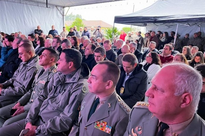 O governador Eduardo Leite acompanhou a solenidade em Gramado e o comandante-geral da Brigada Militar, coronel Cláudio dos Santos Feoli, esteve em Vacaria.