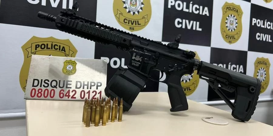 Policiais civis do Departamento de Homicídios confirmaram, neste sábado, a apreensão de um fuzil calibre .556, no bairro Morro Santana, na zona Norte de Porto Alegre. Um carregador de alta capacidade também foi apreendido. Houve ainda a prisão de um criminoso, que estava em liberdade provisória mesmo após condenação por ter tentado assassinar policiais militares.