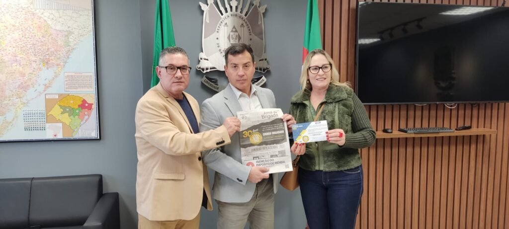 Foi entregue a autoridade o convite para o Evento “DESTAQUES DA SEGURANÇA PÚBLICA”, destinado a premiar policiais, personalidades, instituições, empresas e entidades que contribuem e apoiam a Segurança Pública no RS, acompanhado do jornal comemorativo de 30 anos.