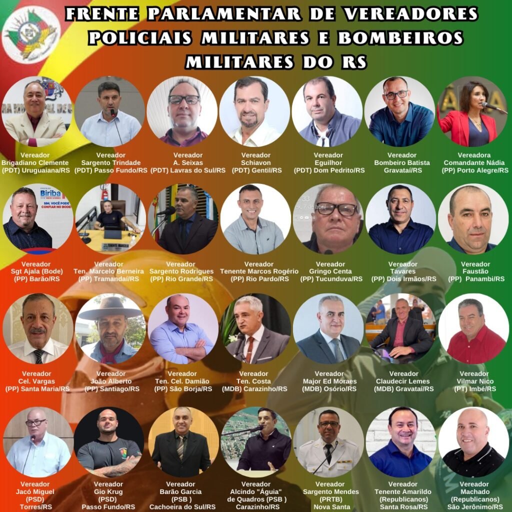 A Frente Parlamentar dos Vereadores Policiais e Bombeiros Militares do Rio Grande do Sul, é composta por 28 parlamentares das diversas Câmaras de Vereadores do Rio Grande do Sul e teve sua constituição no final do mês de abril, com a finalidade de defender os interesses dos militares estaduais.