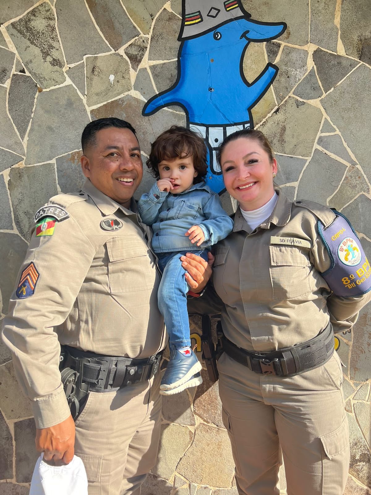 Os pais do menino Davi de um ano e quatro meses, que foi salvo de um afogamento na última quarta-feira (16/8) foram até o Batalhão com a criança para agradecer aos policiais militares envolvidos na ocorrência.