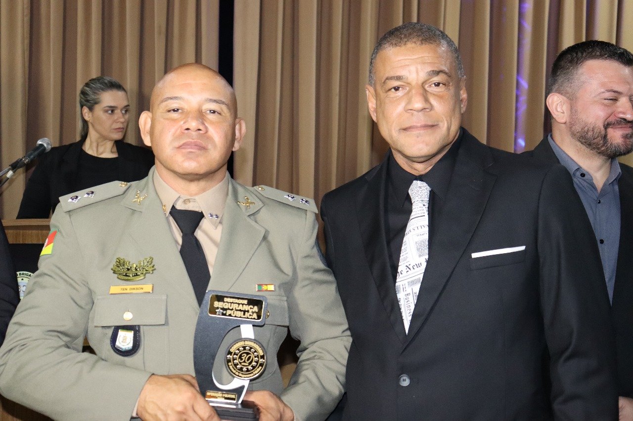 Para simbolizar o espirito solidário que é característico nos policiais, foram destacados o Ex. Secretário de Segurança Pública Cel. RR Marcelo Gomes Frota e 1º Ten. RR. Francisco Marques Neto com troféu voluntários da Segurança Pública.