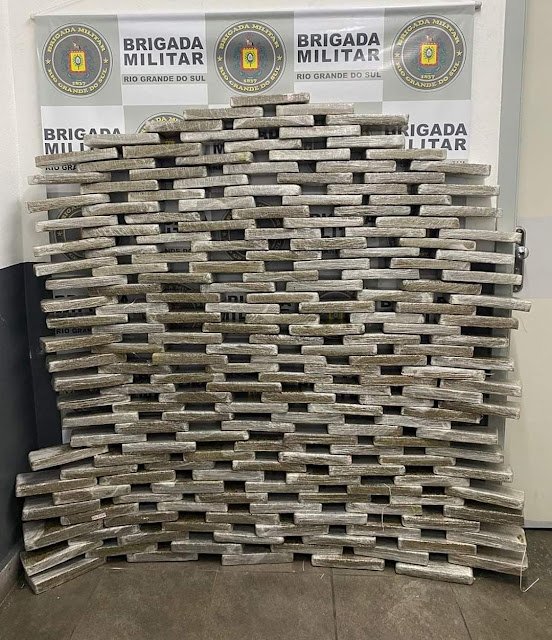 Em abordagem, foi identificado um homem com idade de 34 anos, sendo localizados na revista veicular, aproximadamente 150kg de maconha e um aparelho celular.