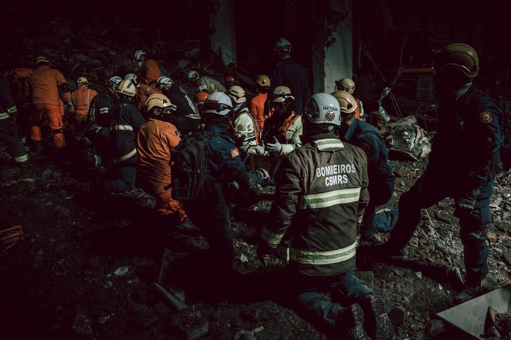Há dois anos, o antigo prédio da Secretaria de Segurança Pública do Estado (SSP), em Porto Alegre, era consumido pelas chamas, levando dois bombeiros à morte. Os bastidores do trabalho de busca e resgate – que se estendeu por uma semana, de forma ininterrupta e incansável – foram registrados em detalhes pelo fotógrafo Rodrigo Ziebell e deram origem à exposição “Ninguém fica para trás”.