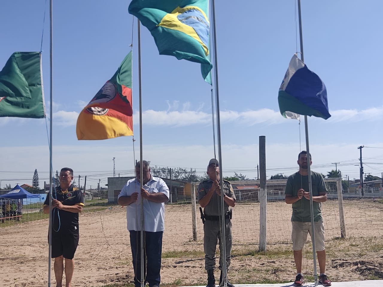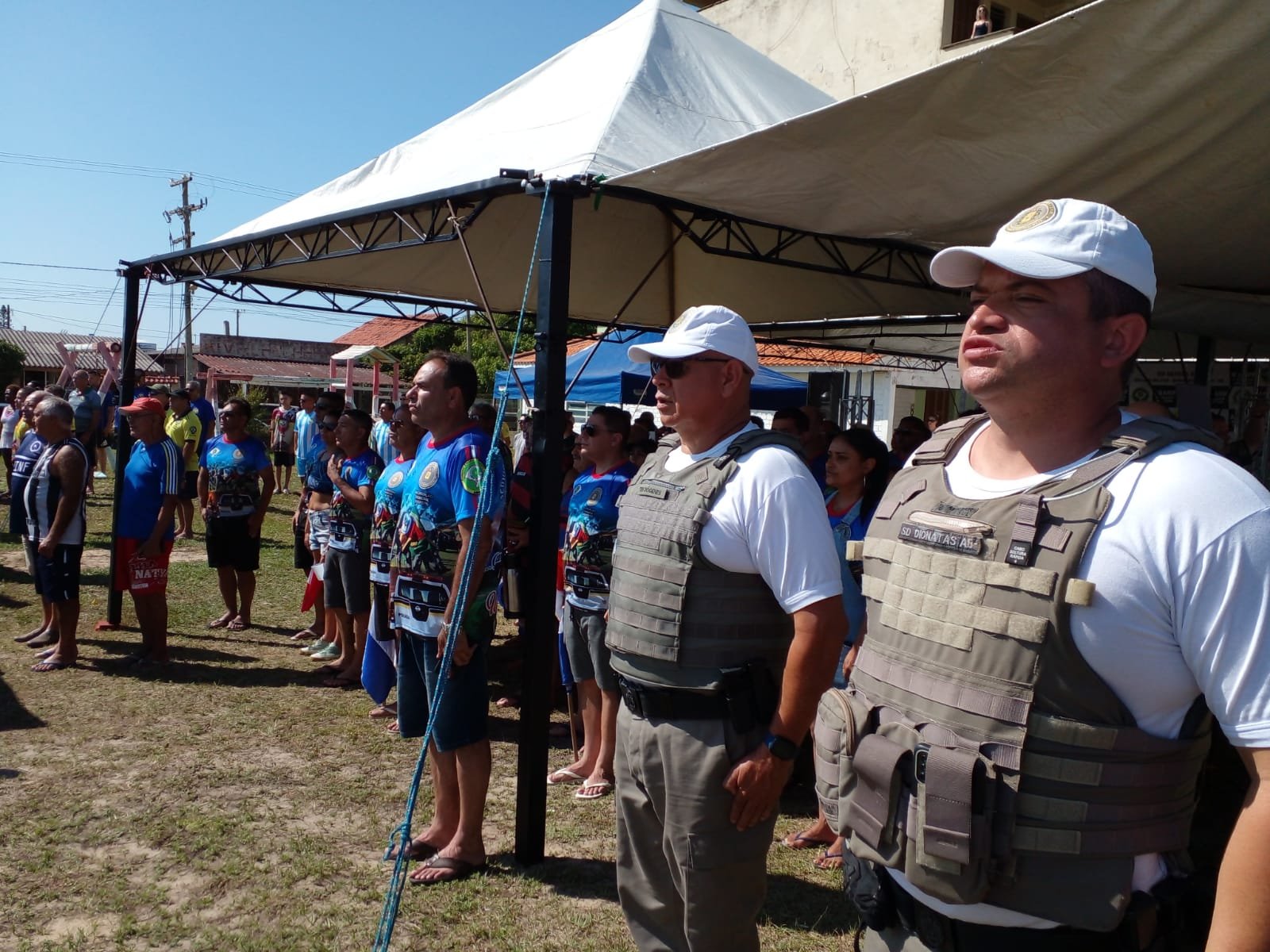 As 09 horas iniciou oficialmente a atividade esportiva que em sua abertura contou com autoridades como o Subcomandante Geral da BM Coronel Douglas Rosa, representando o Comandante da Companhia de Policiamento de Cidreira o 1 Ten PME Diógenes Gilnei e Soldado Dionatas Santos de Souza.