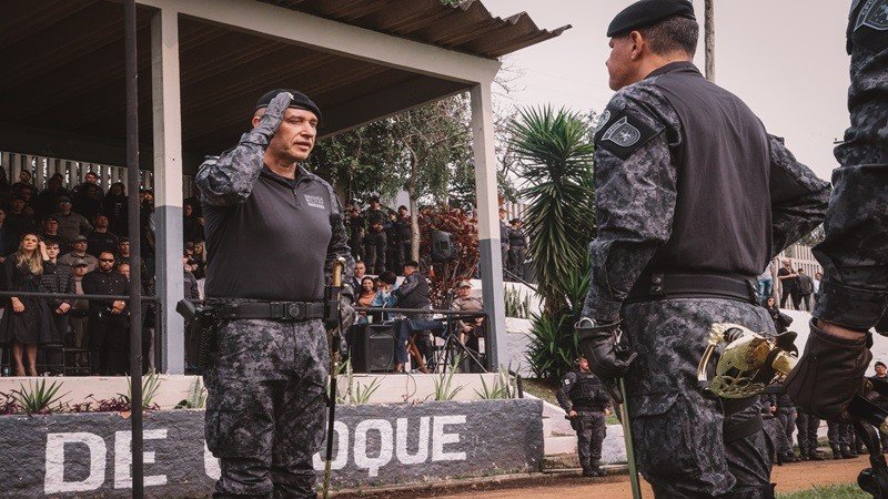 Já o comandante-geral da Brigada Militar, coronel Cláudio dos Santos Feoli, que tem trajetória profissional e de vida dedicada à consolidação da doutrina do Choque da BM, falou sobre os valores associados às operações. “O Homem Choqueano é a personificação do trinômio homem-equipamento-treinamento, que caminham juntos. Com união, fé e espírito de corpo, estamos sempre prontos para qualquer missão e não apenas fazemos a missão; nós vivemos a missão”, explicou.