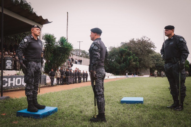 A Brigada Militar realizou a cerimônia de passagem de comando do Comando de Polícia de Choque (CPChq). O evento foi realizado nesta sexta-feira, no Campo de Instrução do 1º Batalhão de Polícia de Choque (1º BPChq), em Porto Alegre. Na ocasião, o coronel Cláudio de Azevedo Goggia transmitiu o cargo ao tenente-coronel Otemar Maia Bianchini.