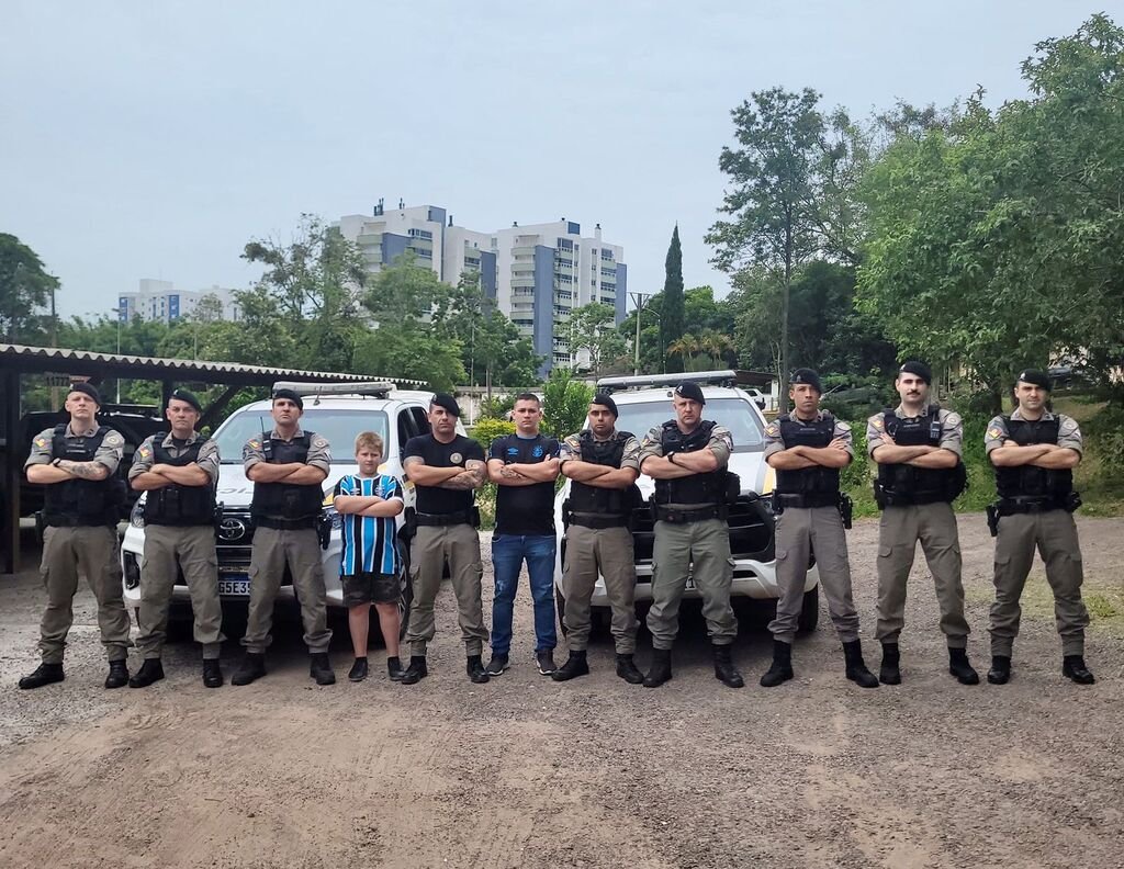 Na tarde desta quarta-feira (10), policiais militares da Força Tática do 1º Regimento de Polícia Montada (1º RPMon), em Santa Maria, receberam a visita do pequeno Lucas Parcianello Dotto, de somente 10 anos.