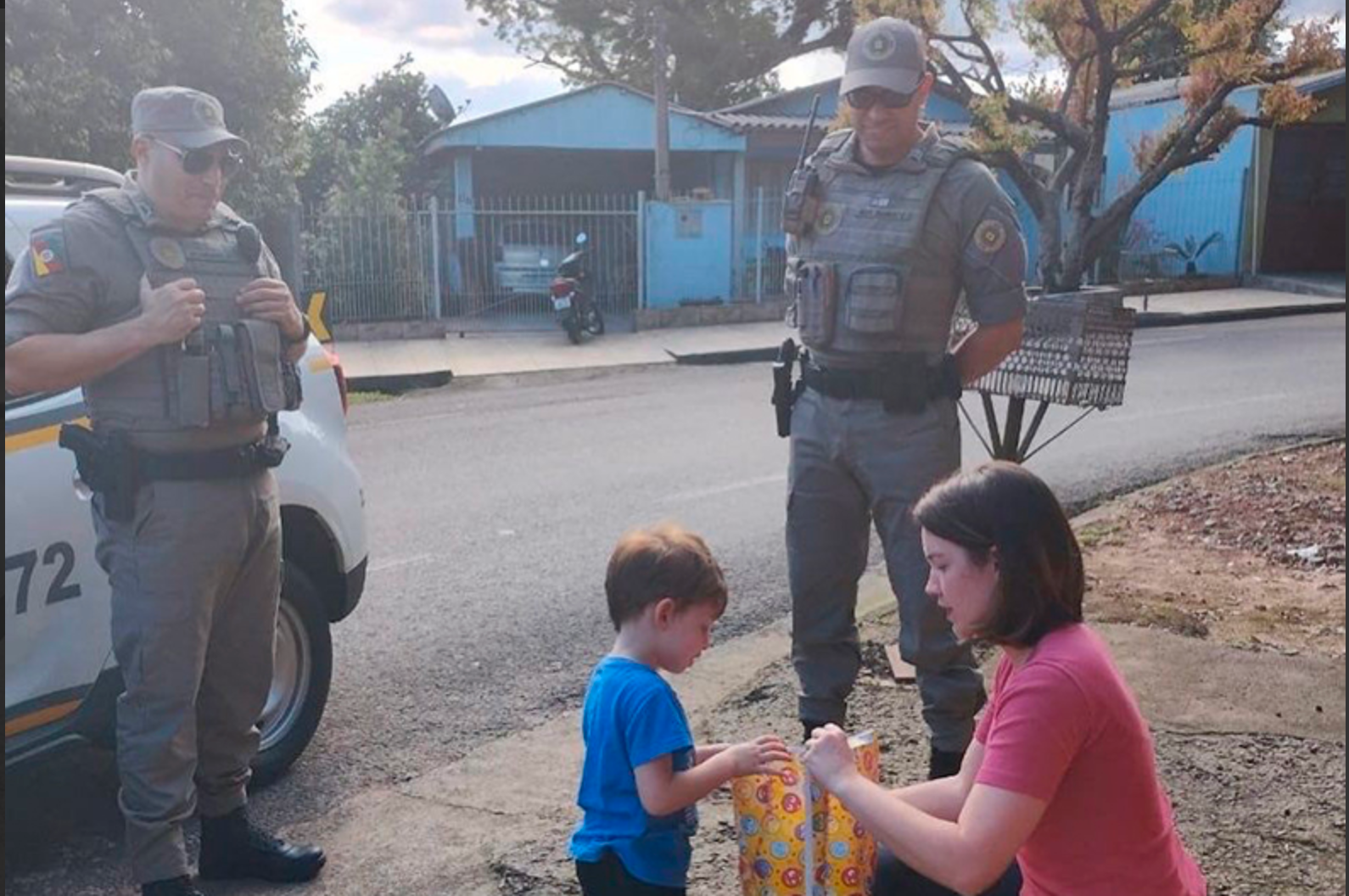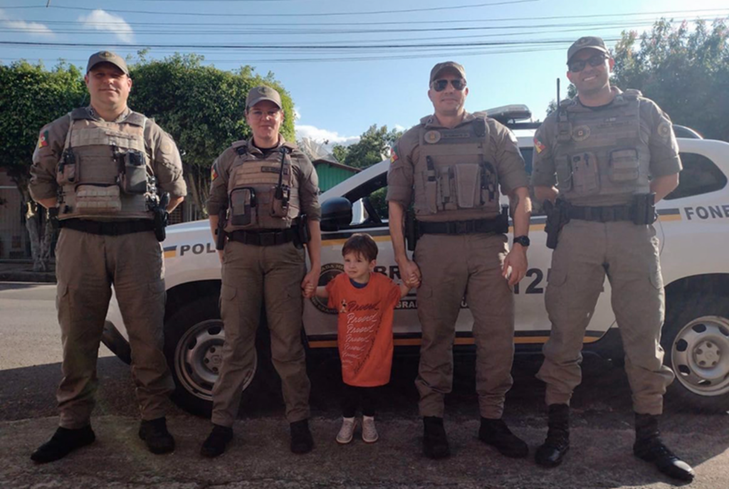 Rafael foi presenteado pelo sargento Schultz e os soldados Roziane, Durante e Werlang, com um leãozinho de pelúcia, uma camiseta, um copo e lápis de cor do Programa de Resistência às Drogas e à Violência (Proerd). Ele, que é autista, pode tirar fotos e conhecer o interior de uma viatura policial.