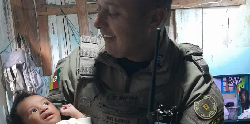 Militares do 19° BPM salvaram, nesta sexta-feira, um bebê na rua Erotilde Machado Santana, no bairro Lomba do Pinheiro, na zona Leste de Porto Alegre.
