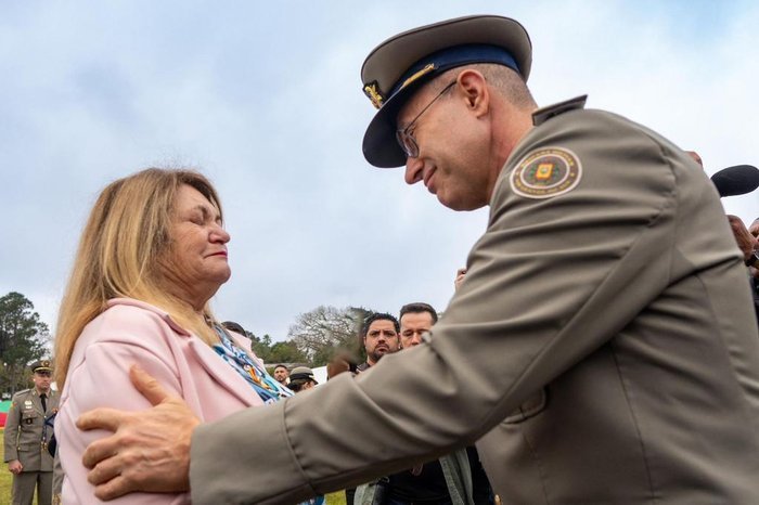 A medalha Estrela de Reconhecimento Grau Ouro foi entregue para a mãe do sargento, Maria Inês Oliveira, e para a esposa dele, Eliane Oliveira.