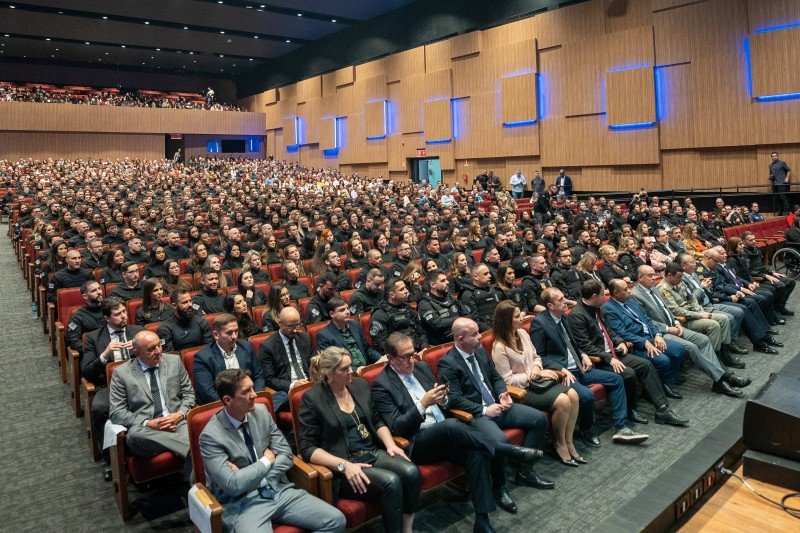 A Polícia Penal realizou, na tarde desta terça-feira (22/8), no Salão de Atos da Pontifícia Universidade Católica do Rio Grande do Sul (PUCRS), a formatura de 355 novos servidores, nomeados em 26 de abril. São 300 agentes penitenciários, 34 agentes penitenciários administrativos e 21 técnicos superiores penitenciários (TSP). Eles atuarão na Cadeia Pública de Porto Alegre, na Penitenciária Estadual de Charqueadas II, no Módulo de Segurança Máxima da Penitenciária de Alta Segurança de Charqueadas e em outras unidades prisionais do Estado.