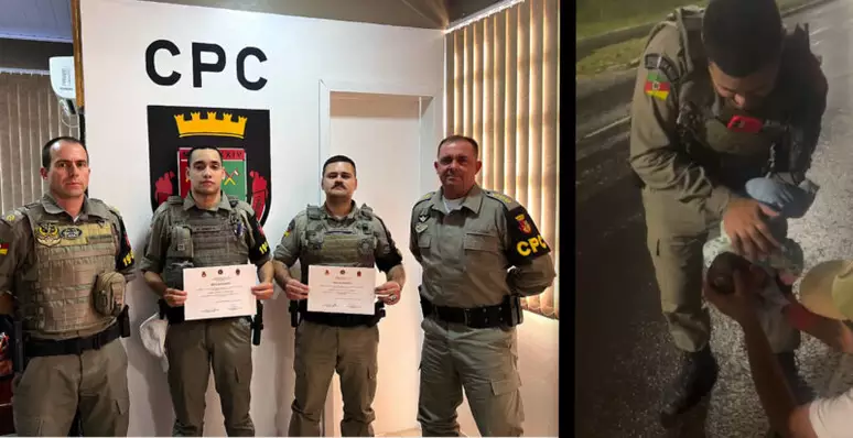 Na tarde de ontem, 08/05, os soldados Santos e Humberto, pertencentes ao 19º Batalhão de Polícia Militar de Porto Alegre, foram homenageados com uma Menção Honrosa por terem salvado a vida de um bebê de três meses, chamado Caíque. Na madrugada de sexta-feira, 05/05, os policiais executaram a Manobra de Hemlich e conseguiram desobstruir as vias respiratórias do bebê, que se encontrava em estado grave.