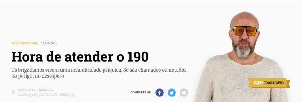 Os brigadianos vivem uma insalubridade psíquica. Só são chamados ou notados no perigo, no desespero. Não são vistos no instante solar da gentileza e da cordialidade.