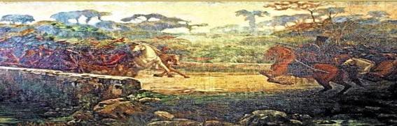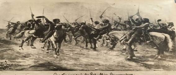Foto: Augusto Luís de Freitas. Combate da Ponte da Azenha, 1923-25. Óleo sobre tela, 3,95 m x 6,20 m. Instituto de Educação Flores da Cunha, Porto Alegre – RS.